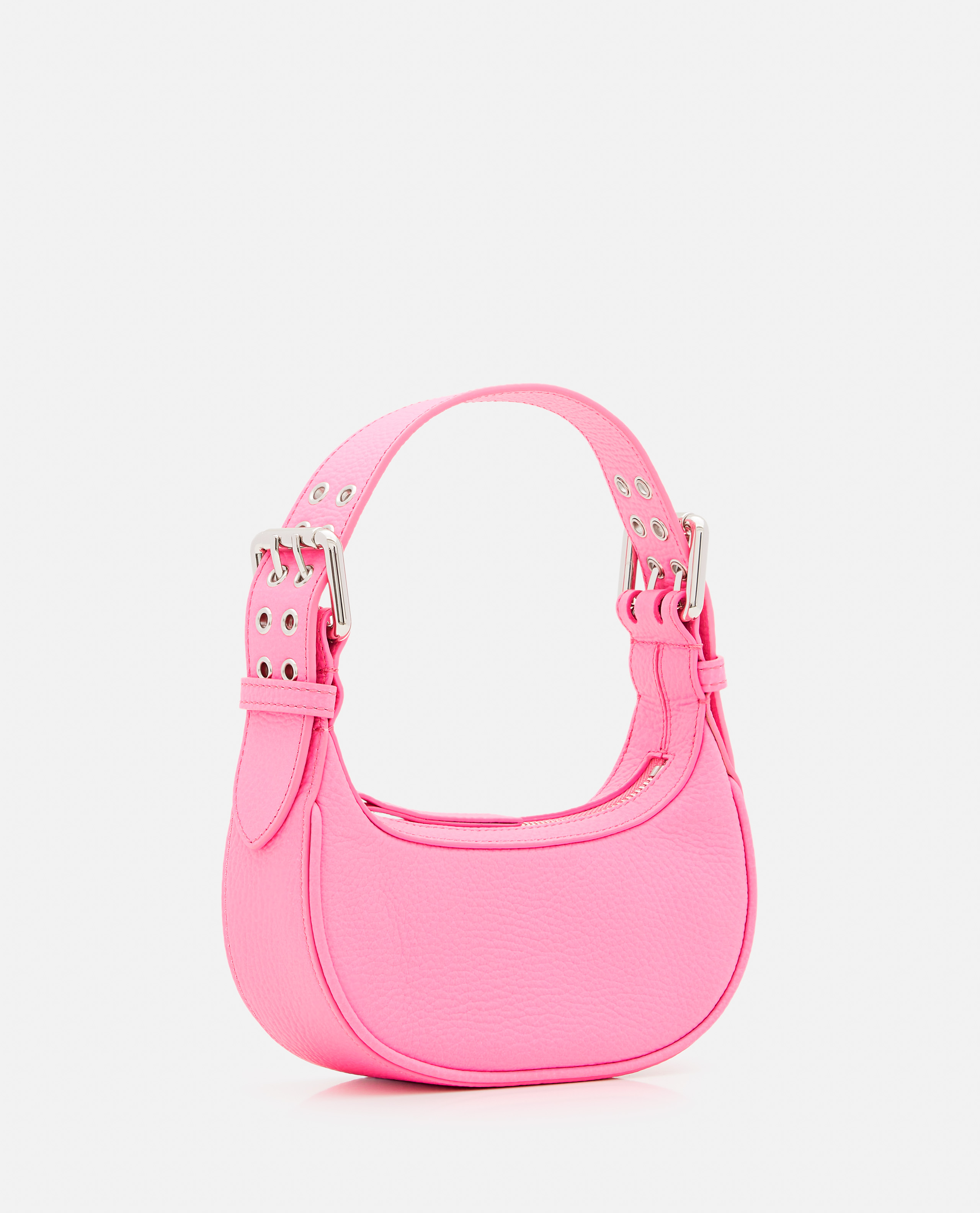 Leather top handle. Adjustable leather handle. Nickel-free silver-toned hardware. Zip closure. Color: pink.