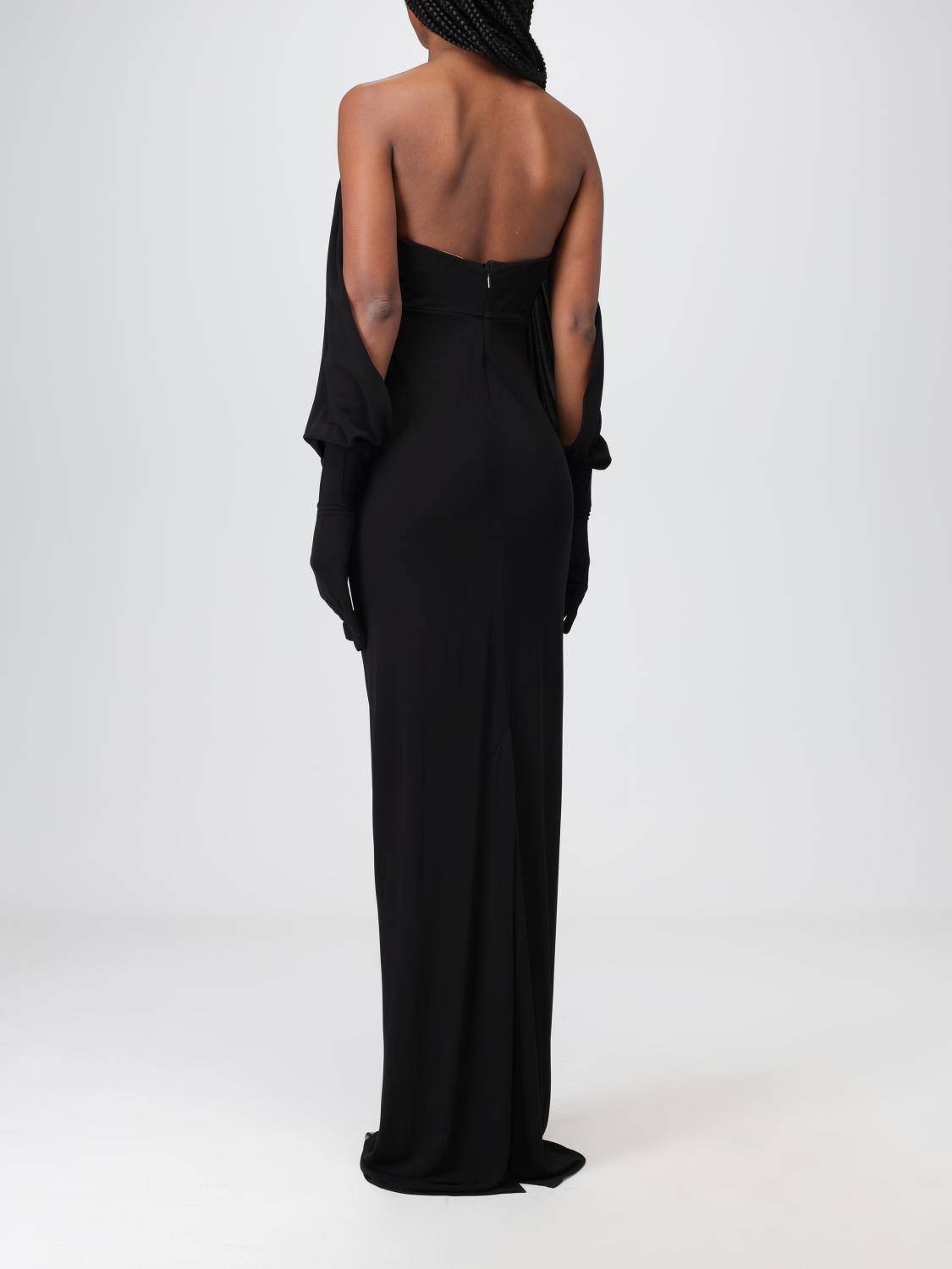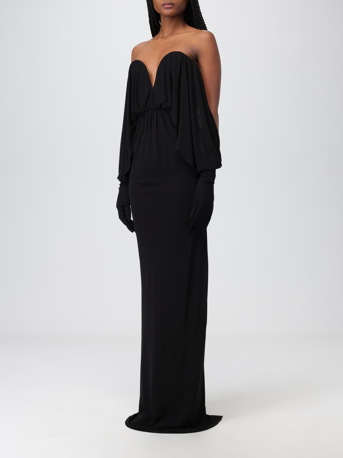 - Contemporary design - Elegant style - Slim fit - Long - Viscose - Sweetheart neckline - Sleeves with gloves - Draped bodice - Back zip closure - Back slit - Straight hem - Made in Italy