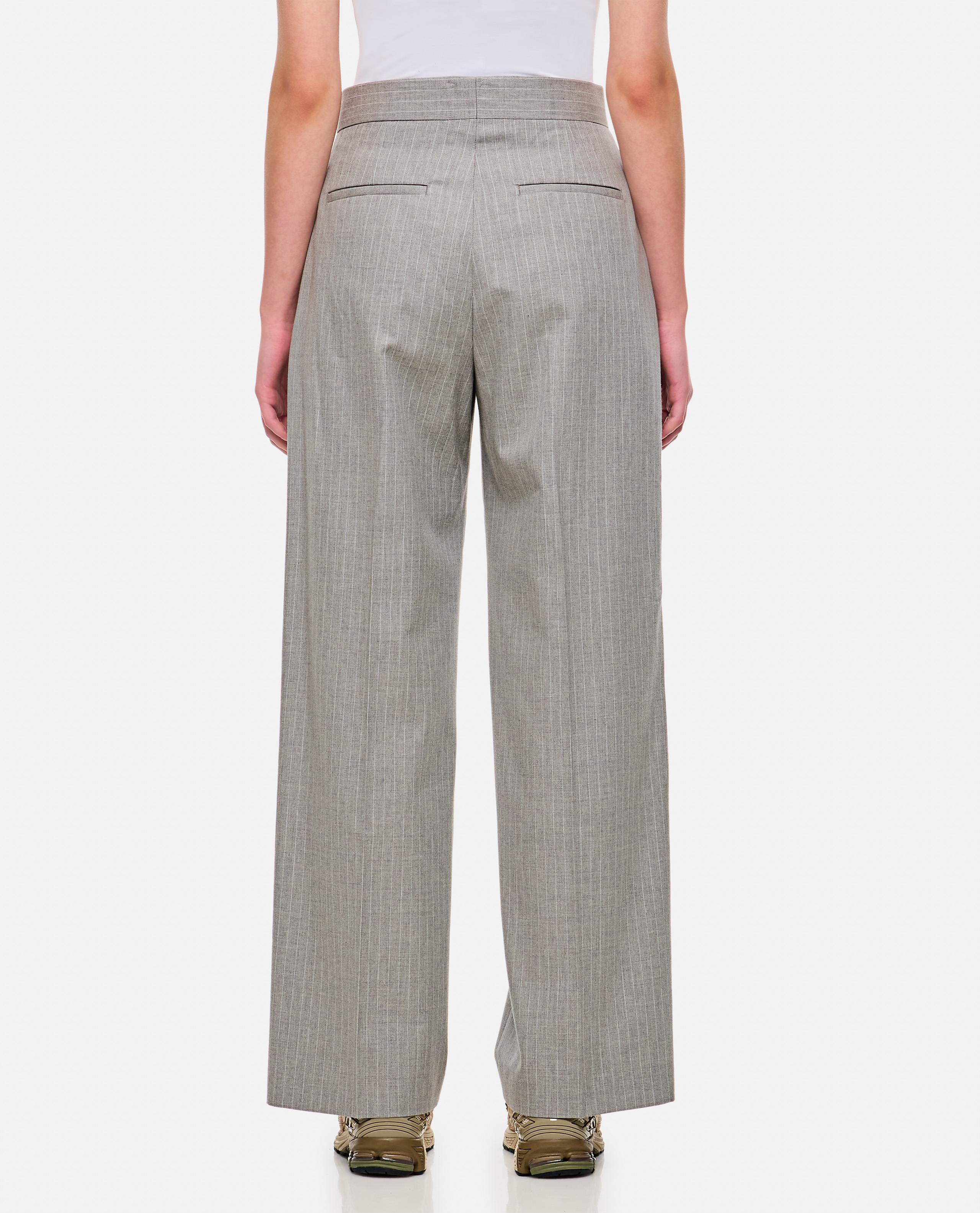 Trousers with pence. Zip and hook fastening. Side welt pockets. Color: grey.