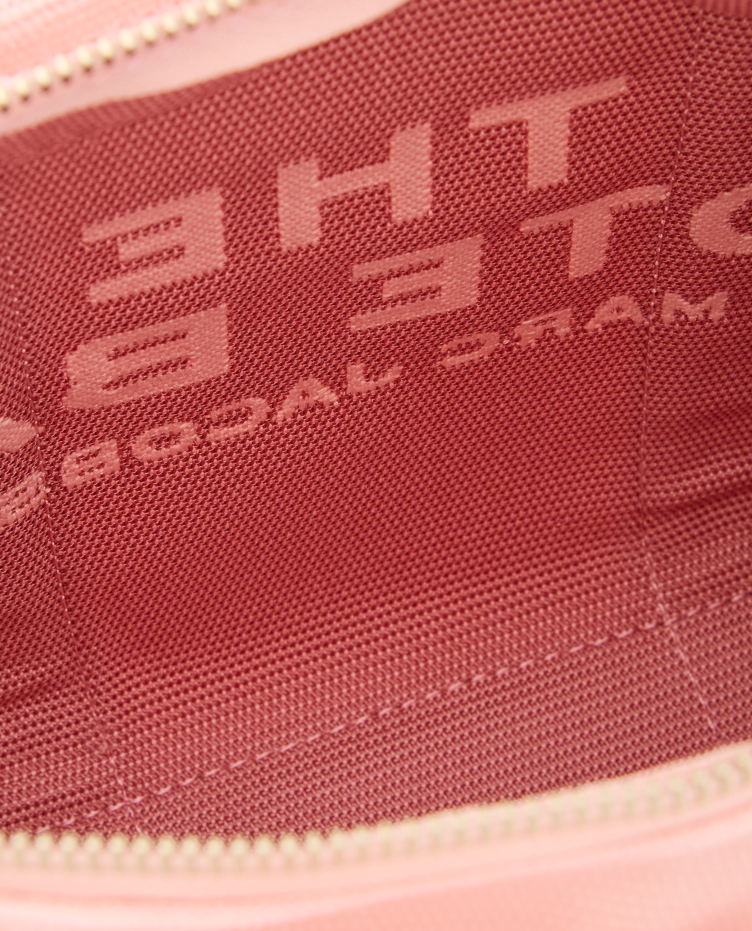 Woven jacquard.Top zip closure.Top handle, removable and adjustable webbing strap.Color: pink.