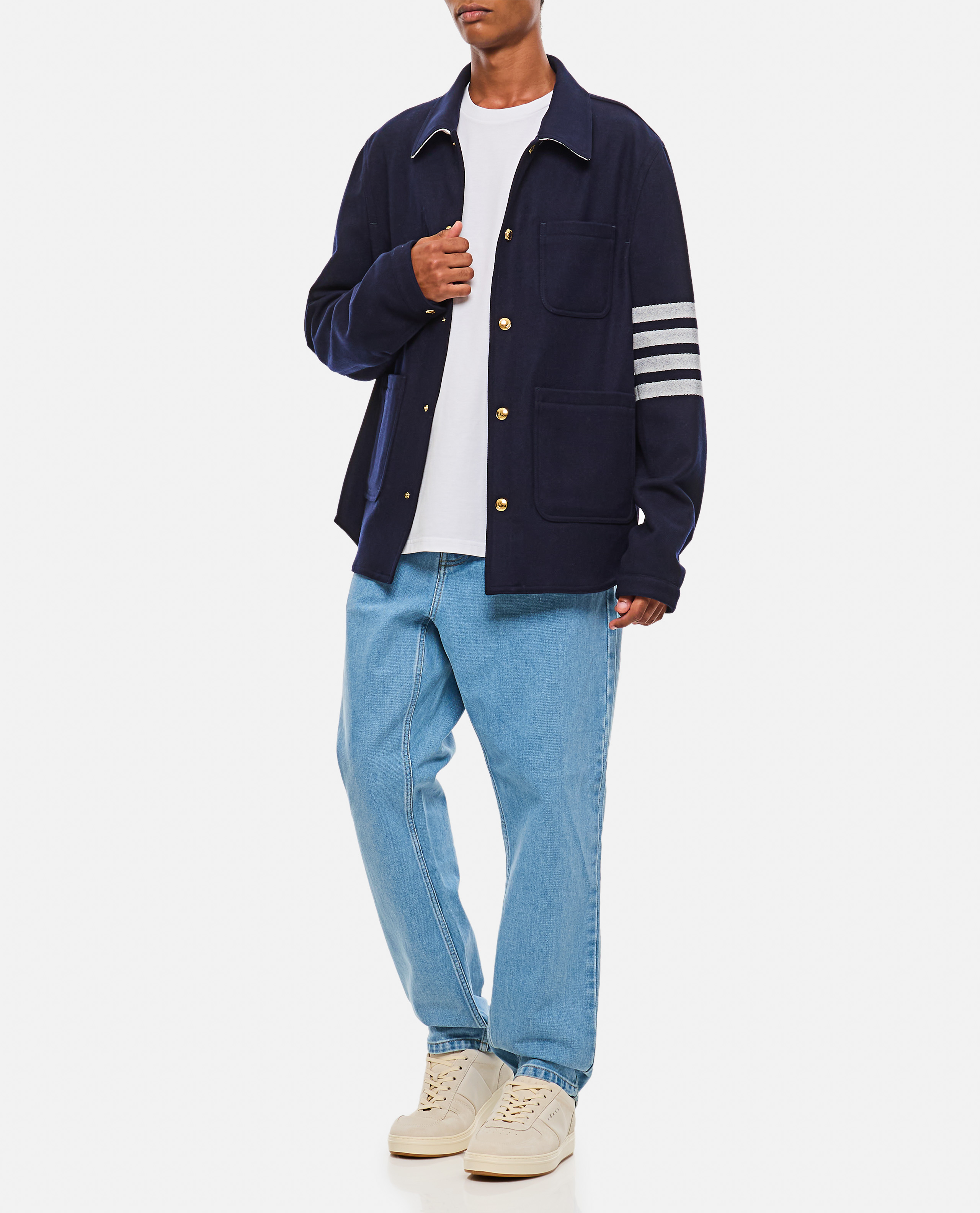 Frontal buttons closure.4Bars sleeve detail.4 frontal pockets.Regular fit.Color: blue.