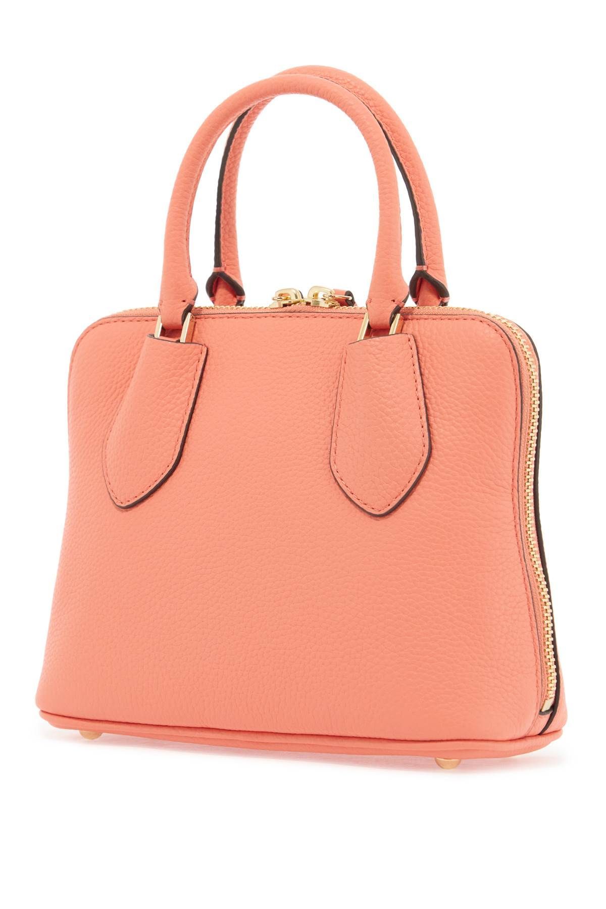 The mini bauletto bag by Tory Burch is made of hammered leather