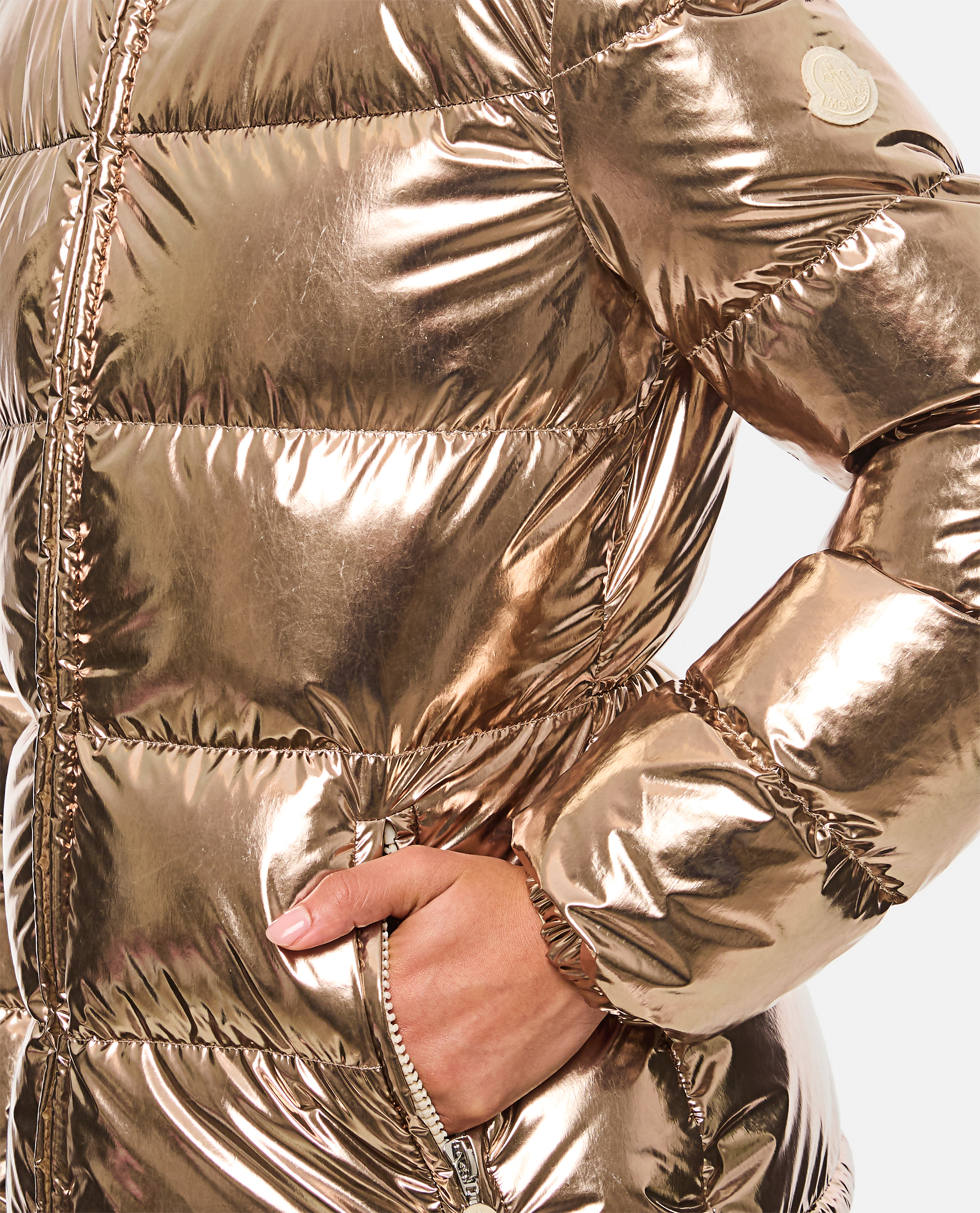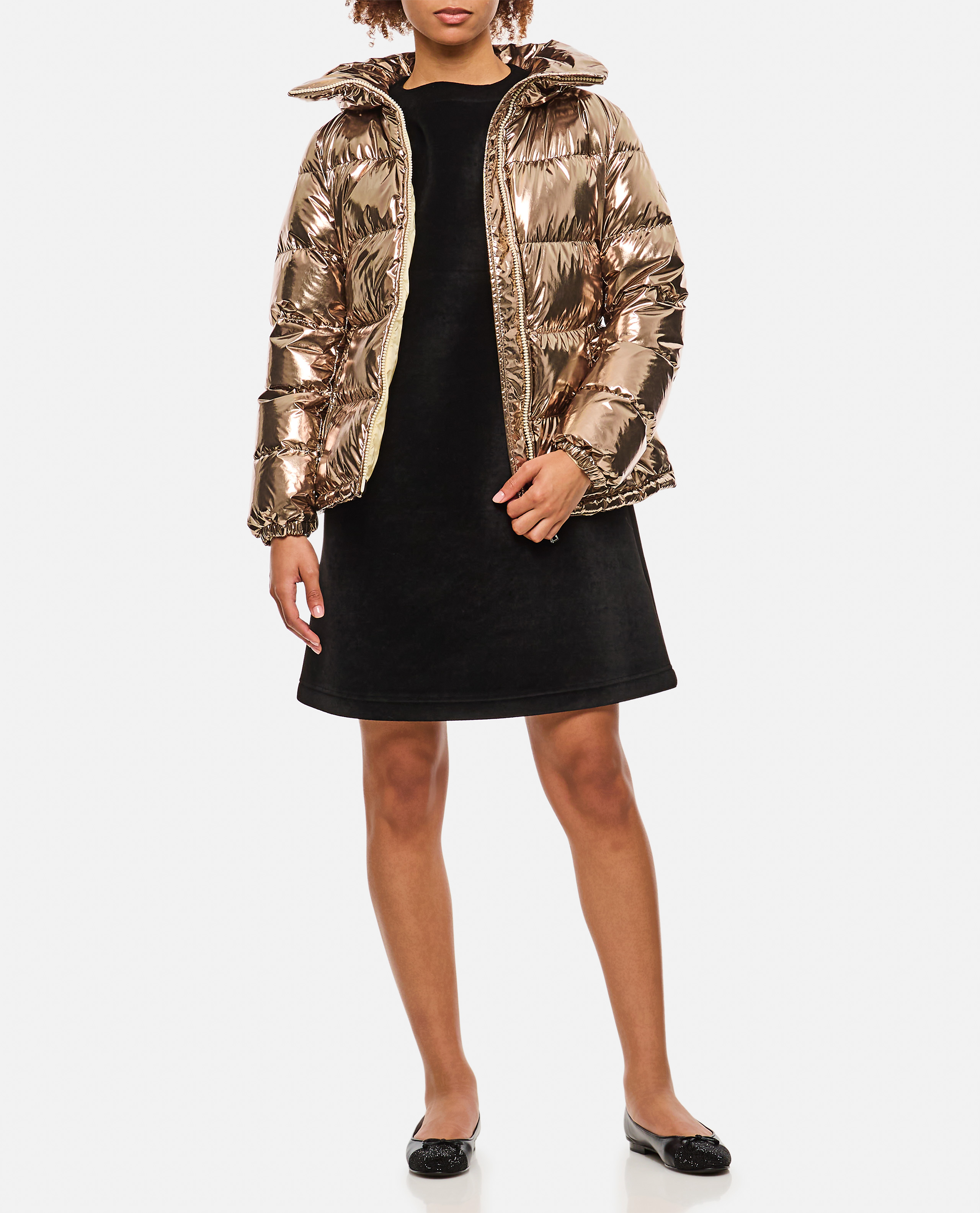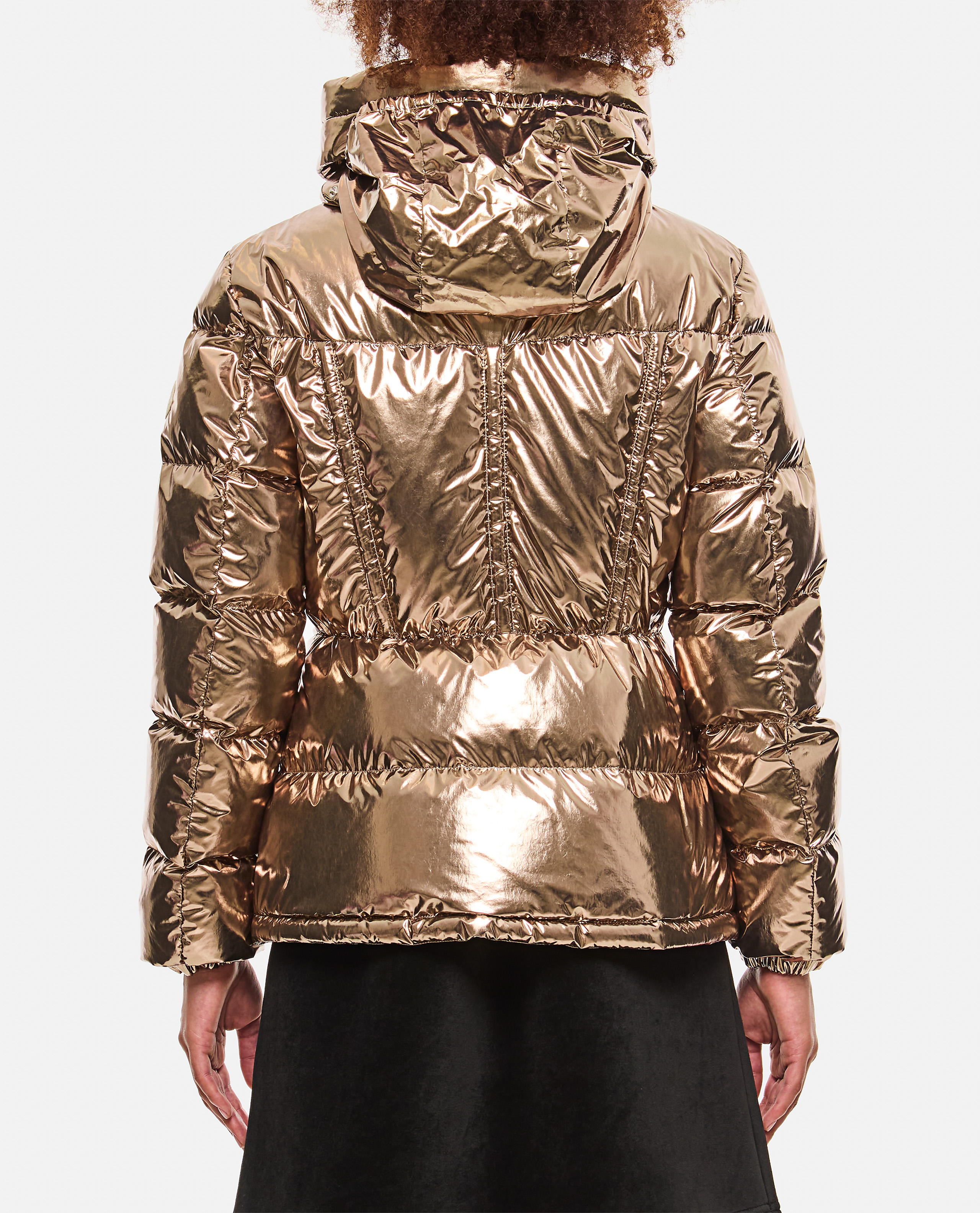 Turtleneck down jacket.Adjustable hood.Elastic cuffs.Color: gold.