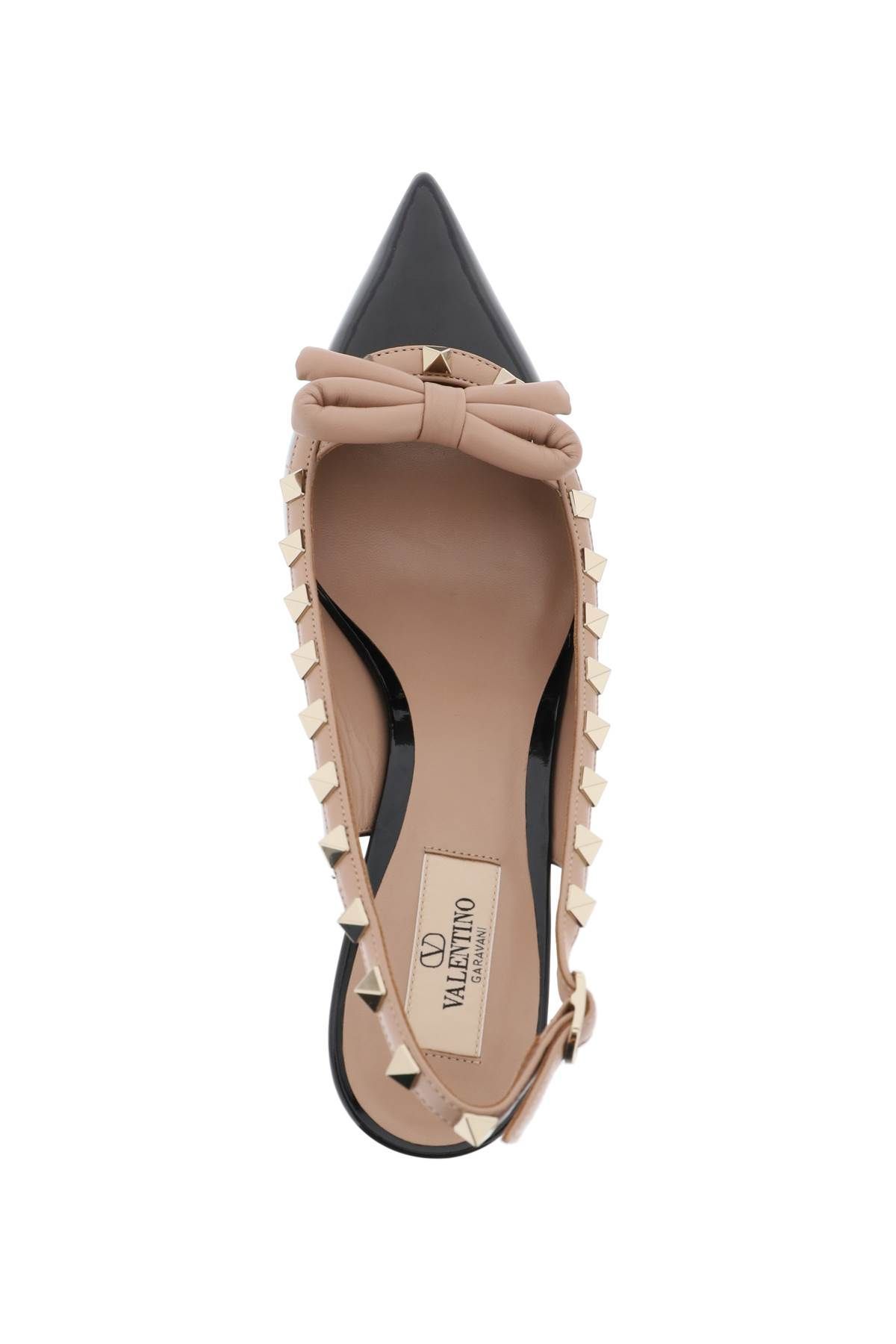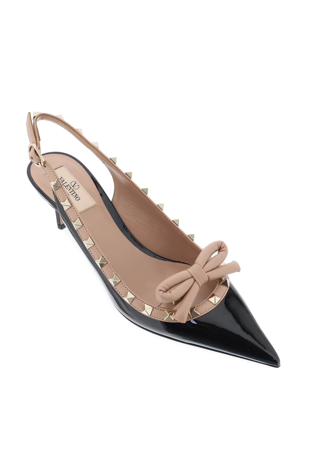 Valentino Garavani slingback pumps made of patent leather and featuring the iconic platinum-finished studs and nappa leather bow