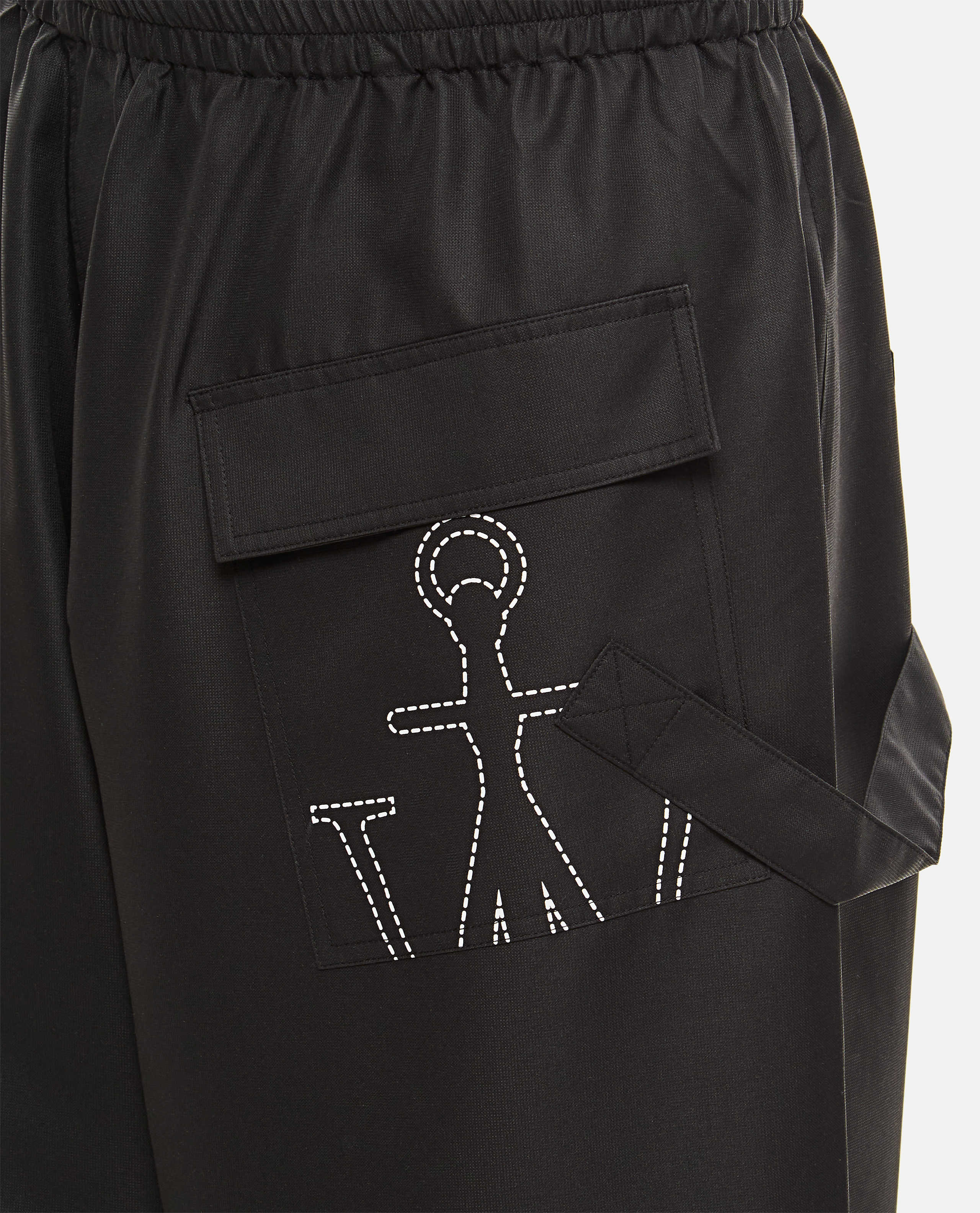 Elasticized waistband with drawstring.Elasticized bottom.Embroidered logo.Side hammer buckle.One cargo pocket on one leg.Color: black.