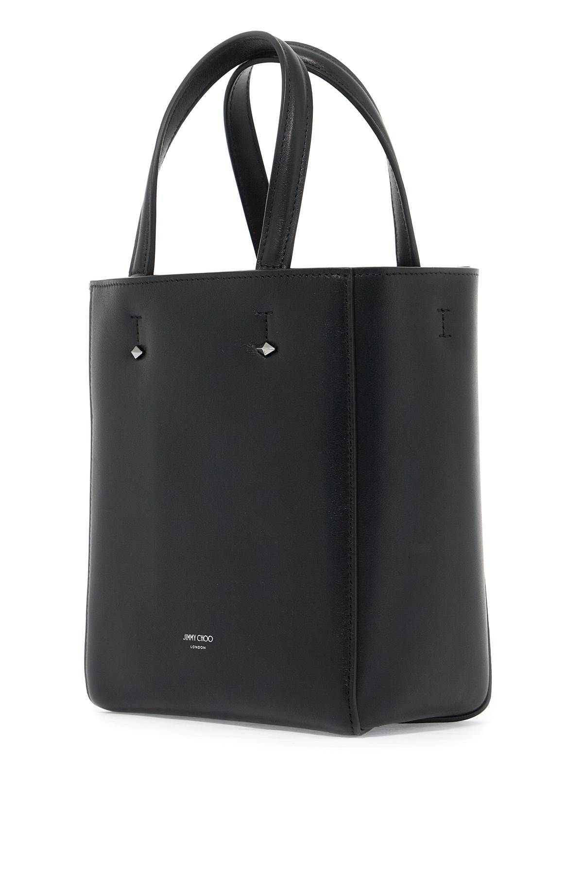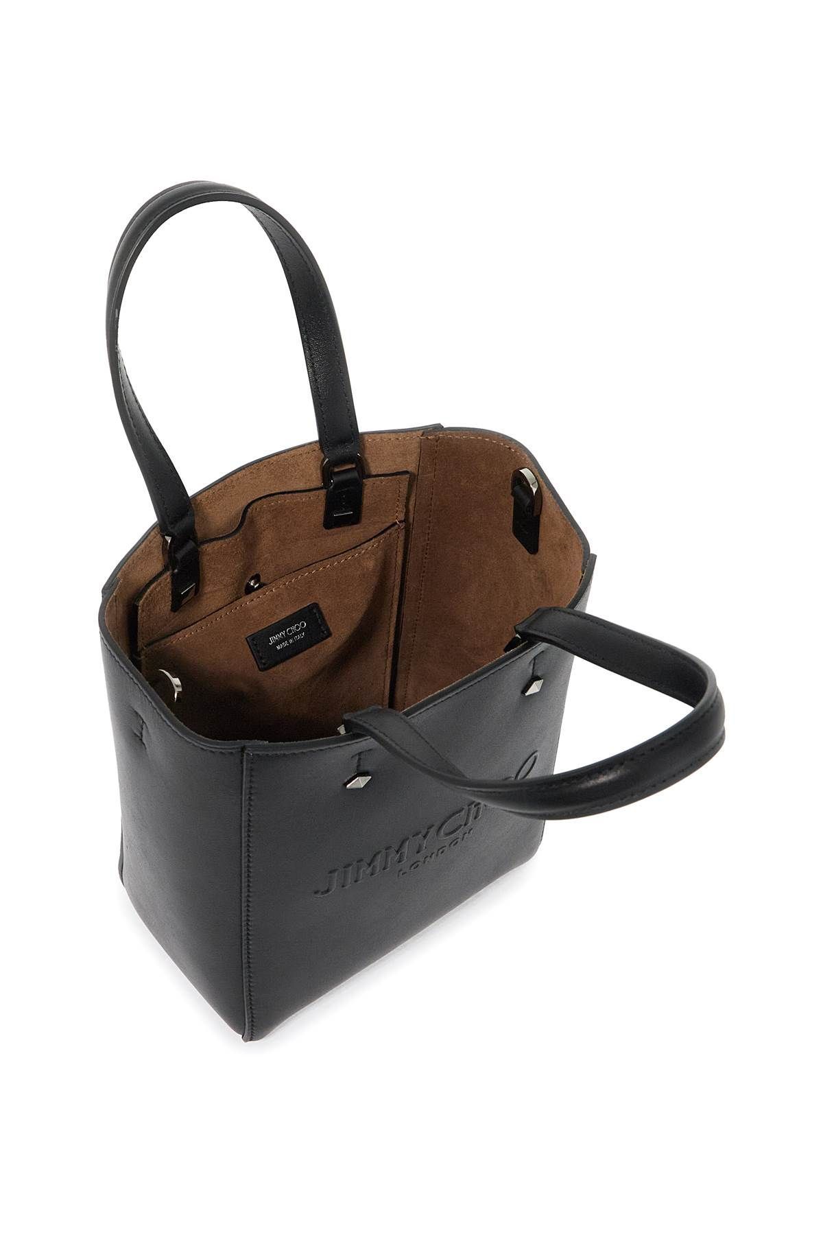 The Lenny tote bag by Jimmy Choo is made of smooth leather and features an embossed logo lettering on the front and faceted studs on the front and back