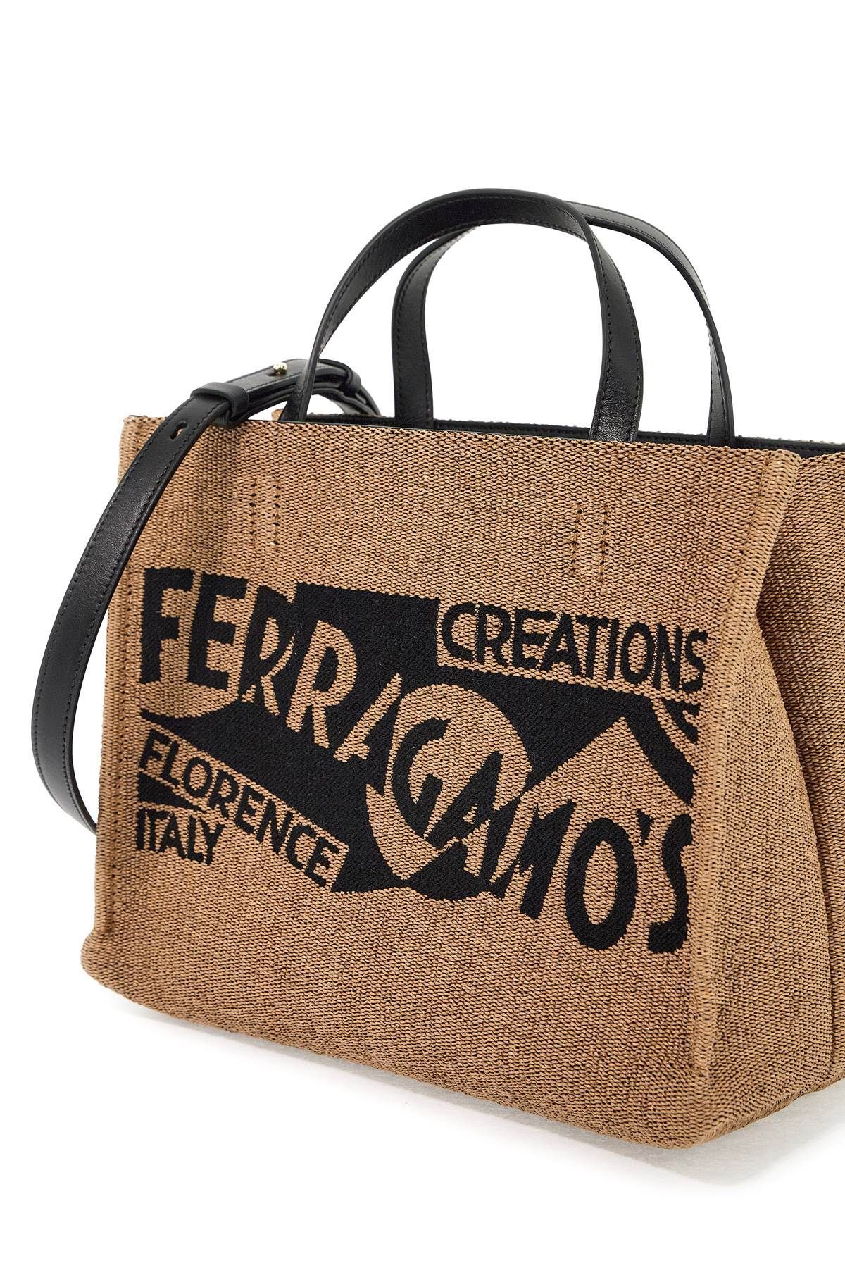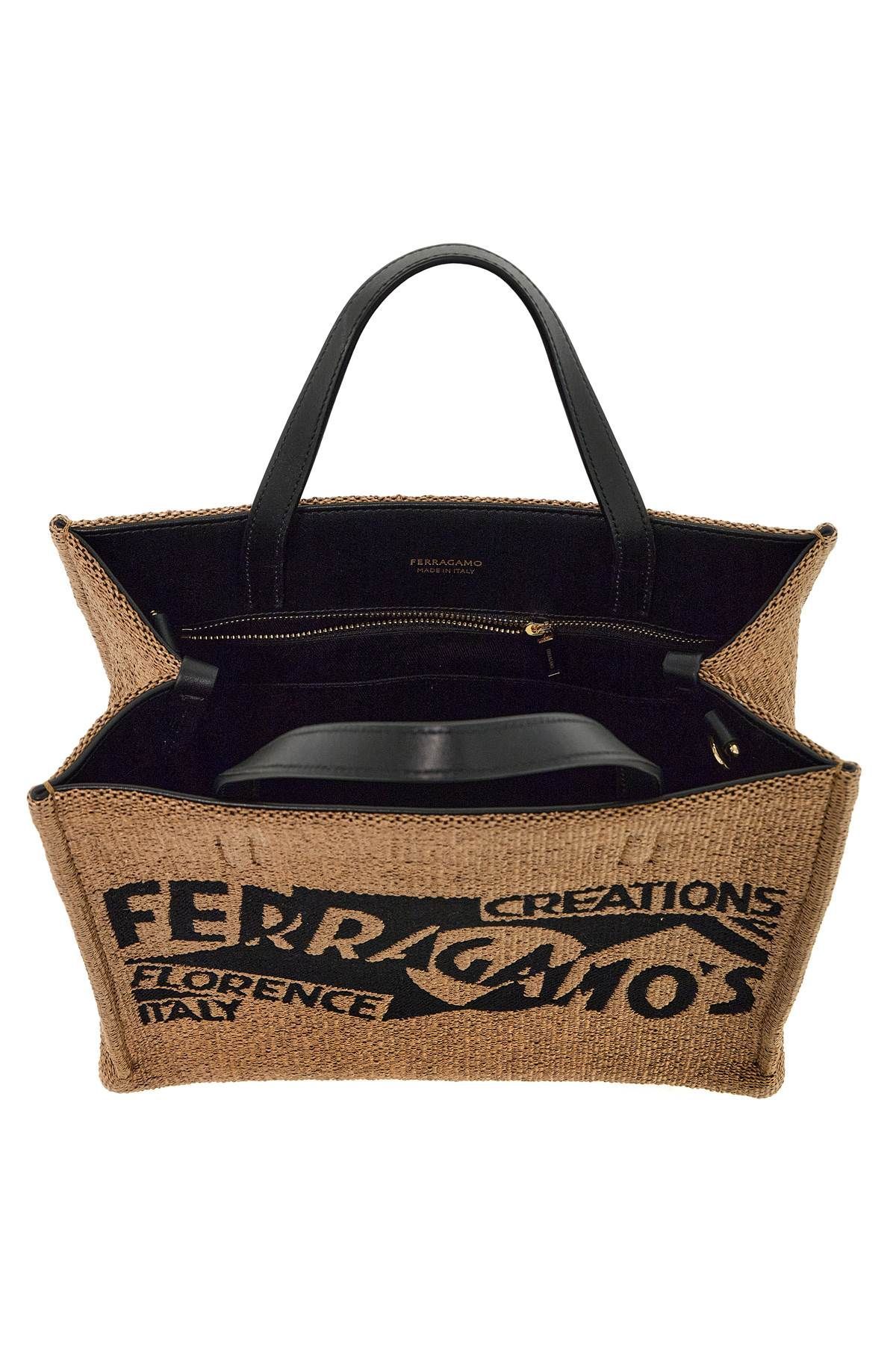 This FERRAGAMO tote bag is made of woven raffia and cotton, featuring the iconic archive logo designed by artist Lucio Venna for the Vara footwear collection