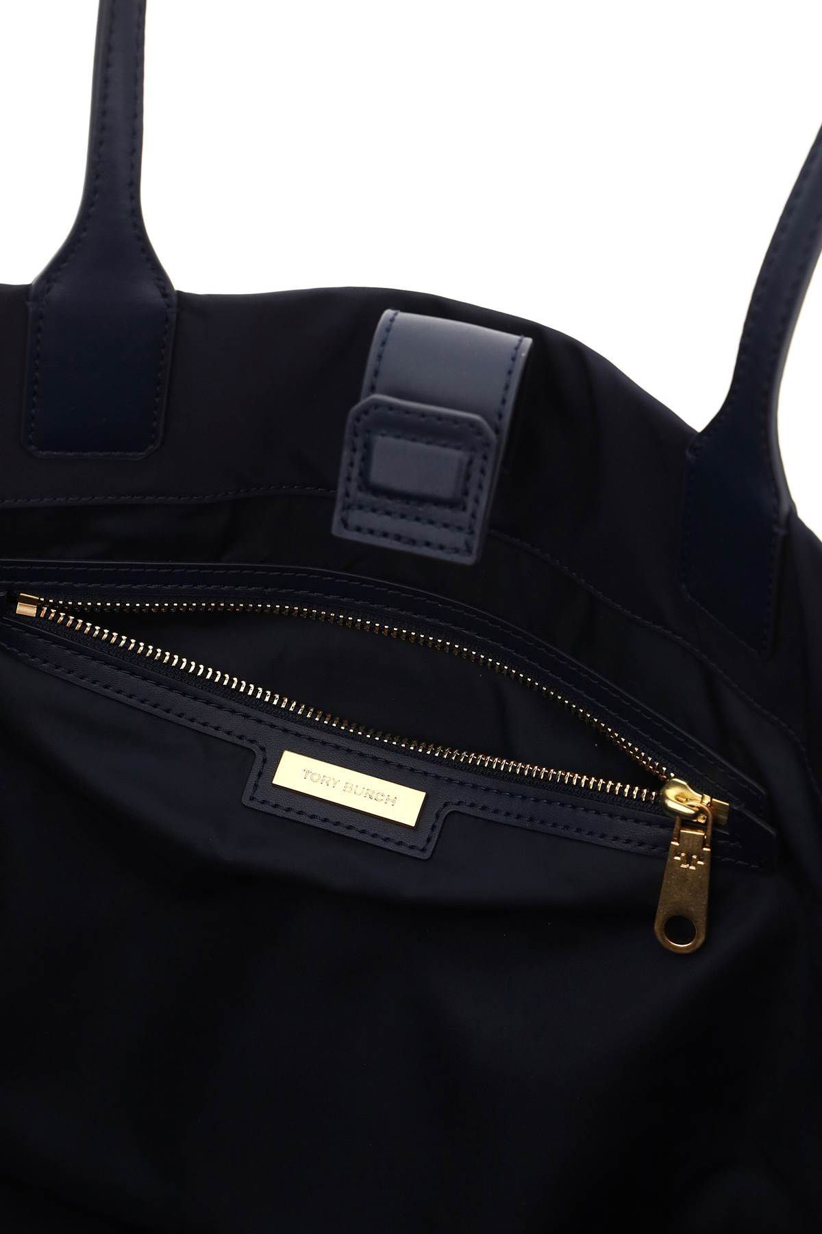 Tory Burch nylon tote bag with tone-on-tone handles and leather insets